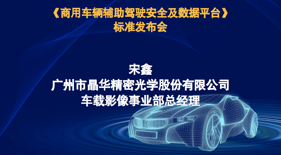 2022年12月30日下午,由廣州市晶華精密光學股份有限公司作為主要起草單位的《商用車輛輔助駕駛安全及數(shù)據(jù)平臺》團體標準正式發(fā)布,晶華光學主要起草人:宋鑫、胡文祥。